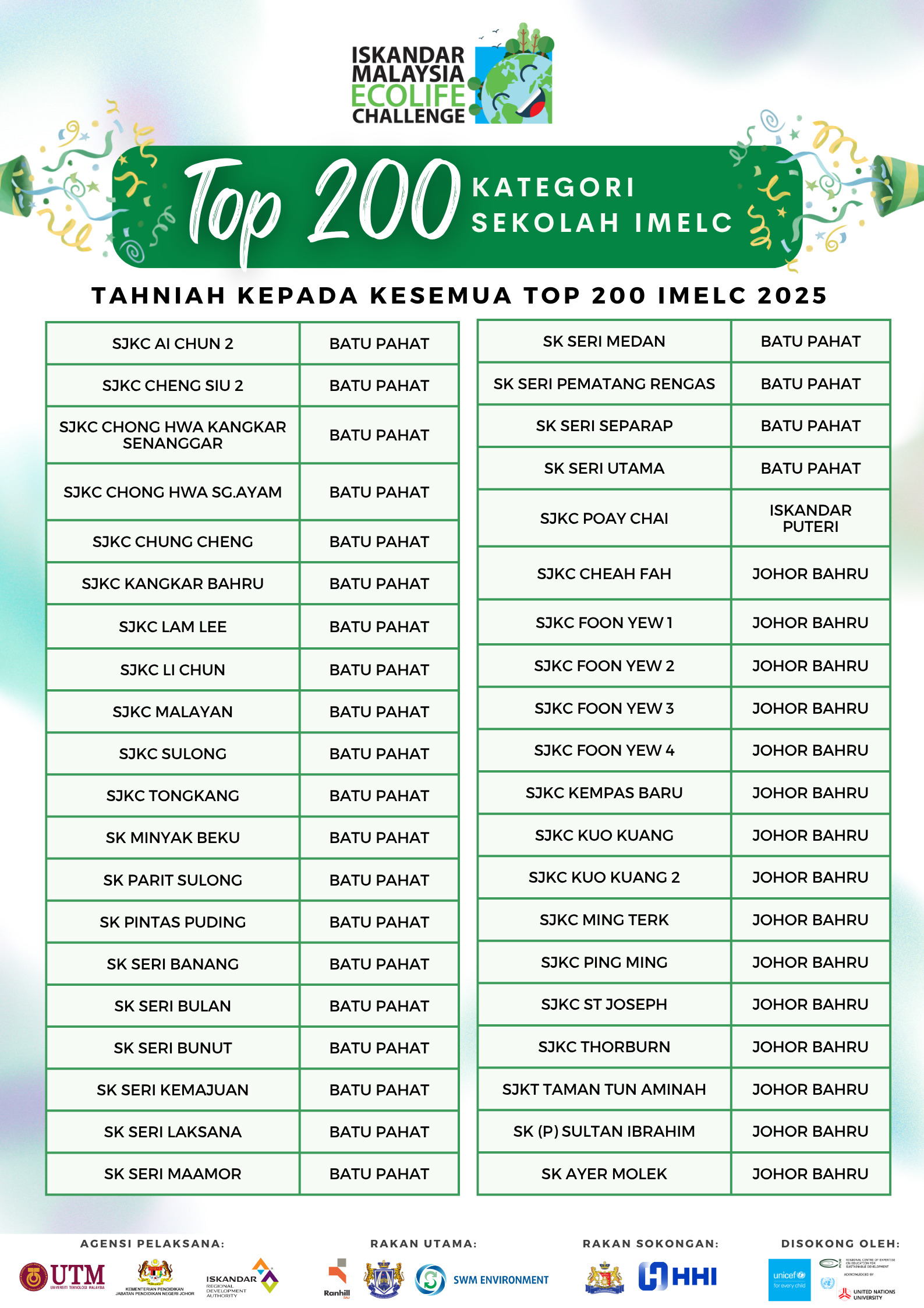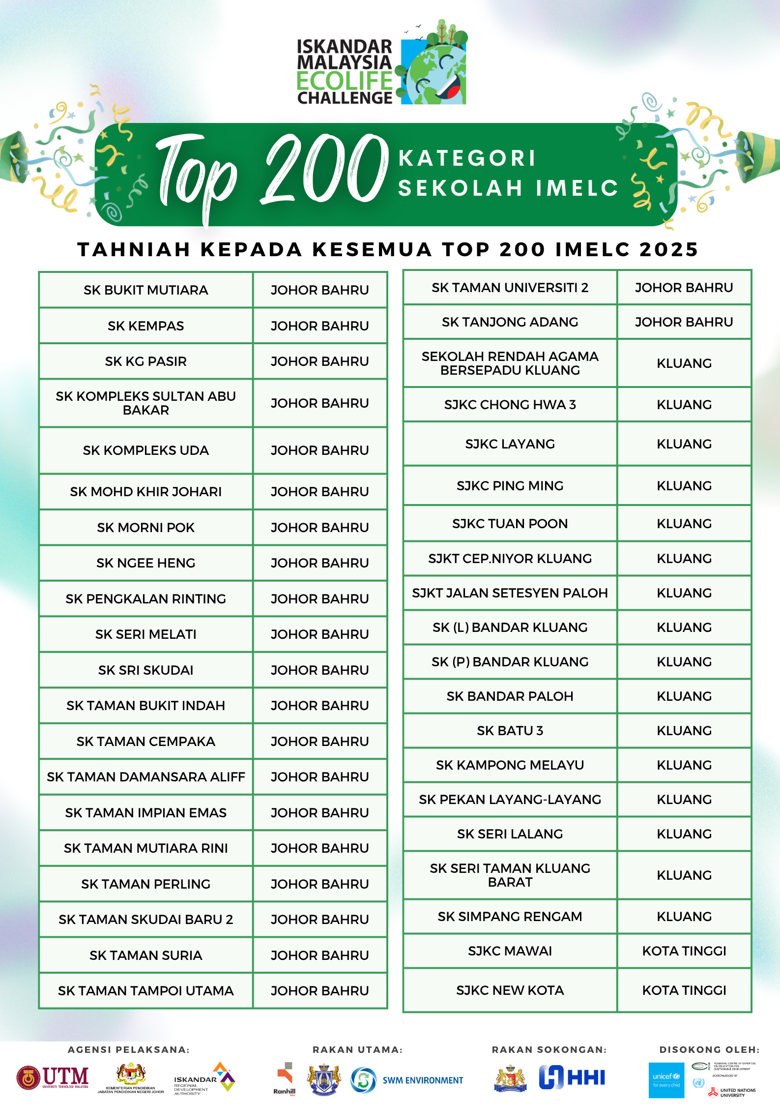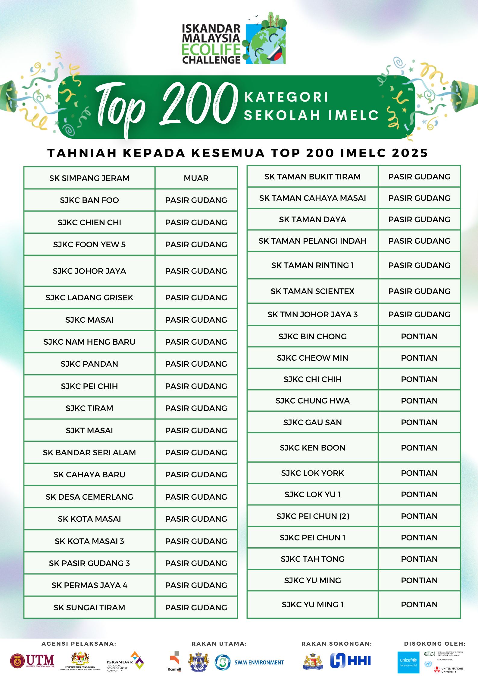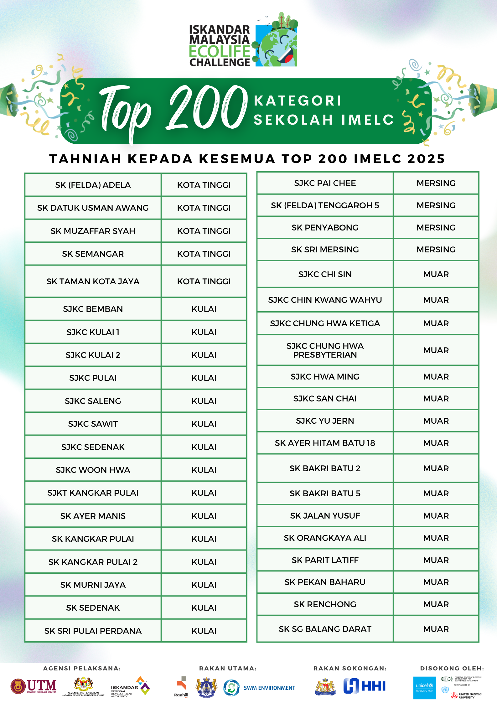 ✨ Top 200 Kategori Sekolah IMELC 2025 ✨